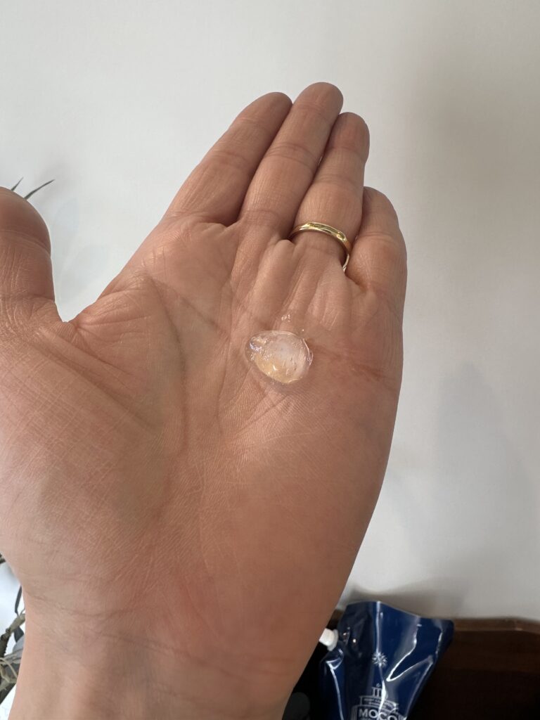 手に出したときはみずみずしいジェル状ですが、髪になじませるとスッと伸びて、